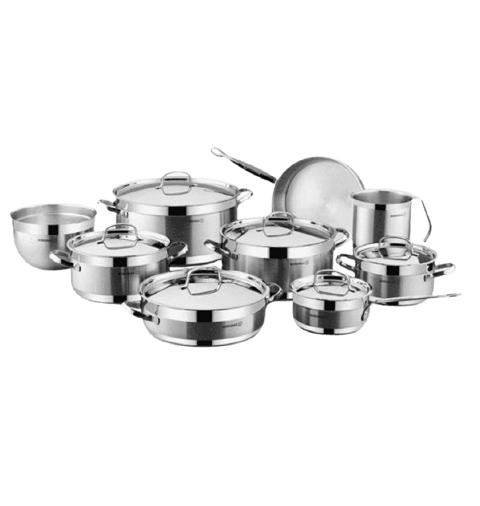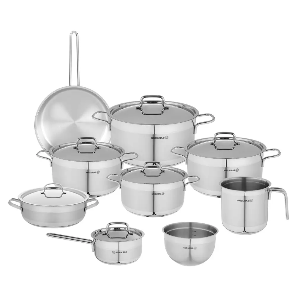طقم حلل ستانلس كوركماز الفا جامبو 15 قطعة – فضي