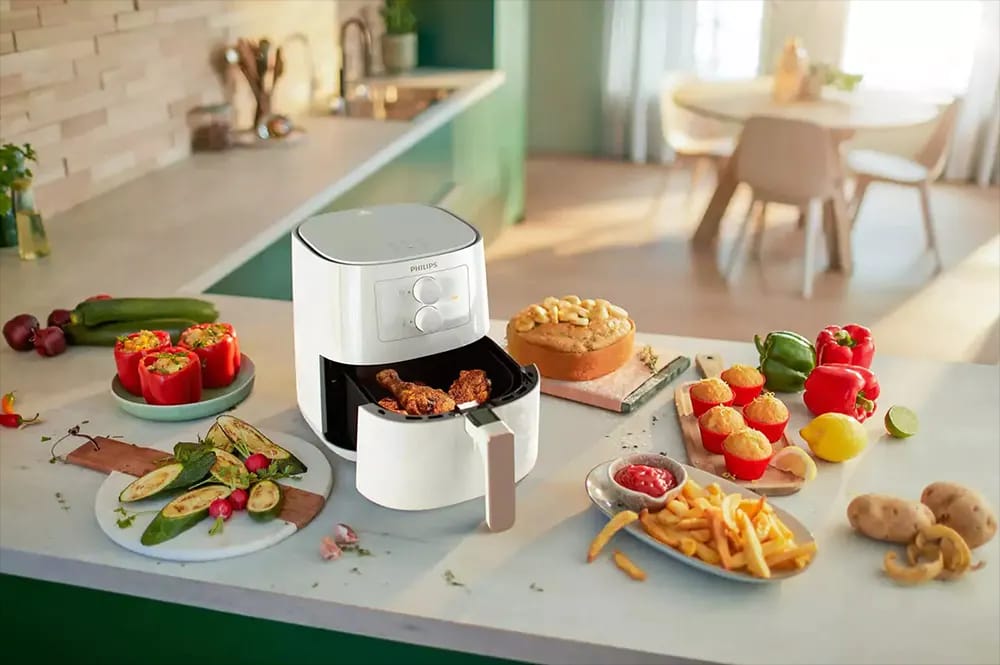 قلاية فيليبس الهوائية (موديل HD9200/21 أو HD9200/91) سعة 4.1 لتر (0.8 كجم) باللون الأبيض هي خيار ممتاز للطهي الصحي، بقدرة 1400 وات وتقنية Rapid Air للقلي بدهون أقل بنسبة 90%. تتميز بتصميم مدمج، تحكم تناظري (أنالوج) للوقت والحرارة، وقابلية غسل أجزائها في غسالة الأطباق.